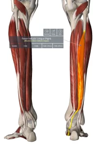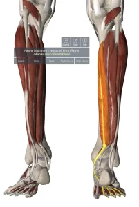 脛骨・腓骨の裏側から、足首・足指にかけてつながる筋肉です。