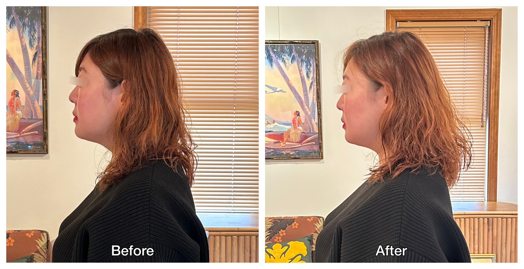 全体として、骨格のアライメント(位置関係)が整い、横顔のシルエットがより美しくなりました。