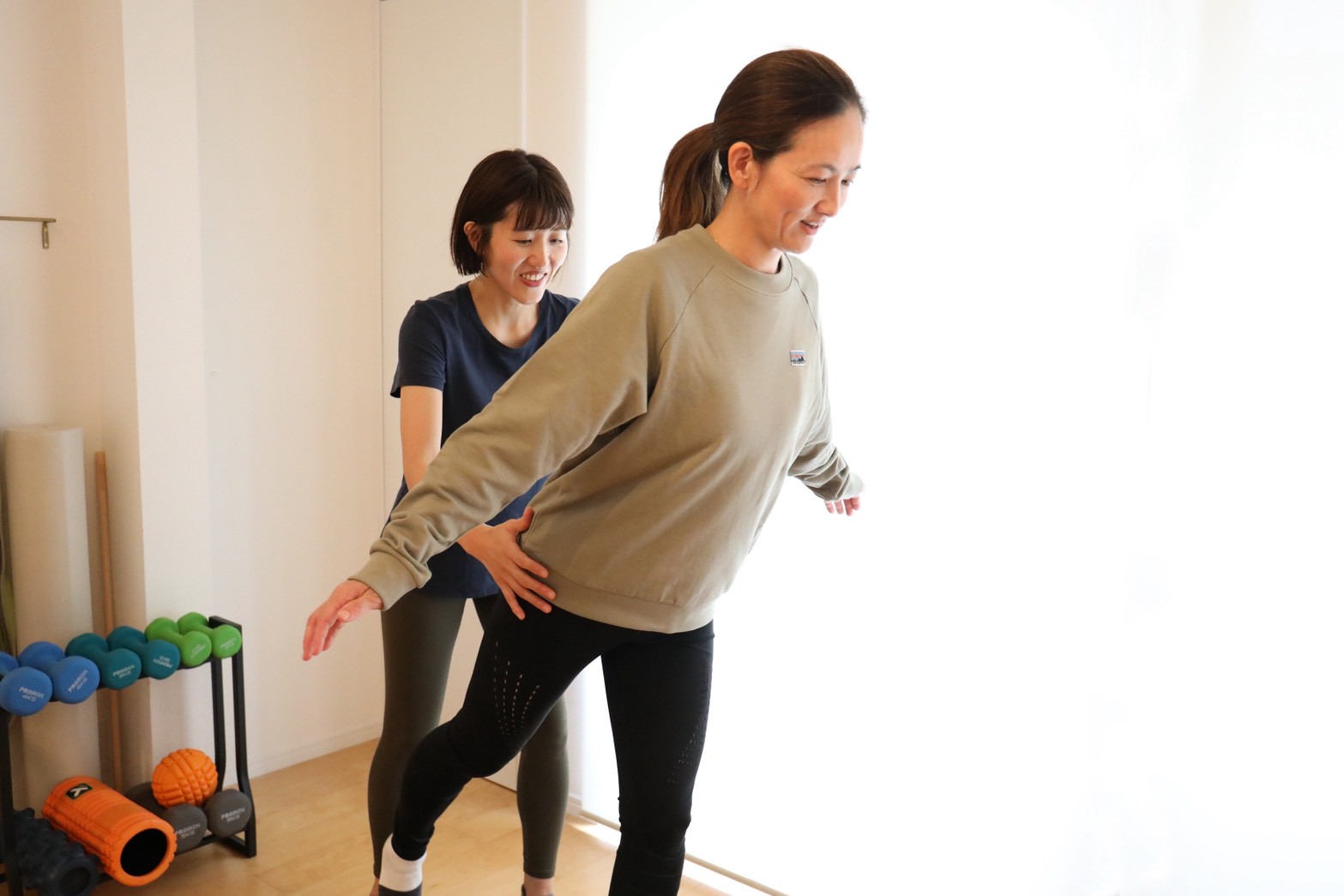 け、姿勢や動きの質を改善していきます。“軽やかに、美しくしなやかに動ける身体”をつくるためには、関節の可動域を確保し、背中・お腹・お尻など体幹の安定性を高め、下半身で身体を支えられる状態をつくることが必要です。